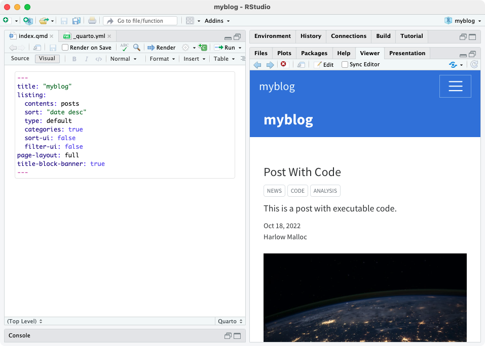 That index.qmd file is the new blog post and when you render that, the blog home page will automatically update to include the newest post at the top of the listing.