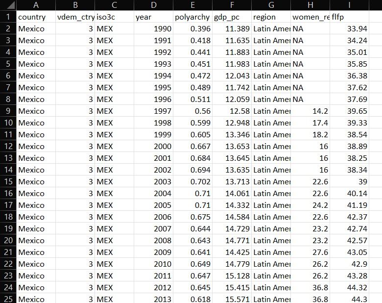 Data enters our workflow in many ways. Often, it is sent to us directly by a boss or a client, usually in the form of a spreadsheet or CSV file. Sometimes we collect it ourselves through surveys, or we might use data collected by someone else. Increasingly, data is also available online, either for download or through scraping techniques. In R, we often work with data that comes packaged in libraries, such as unvotes or vdemlite. Many datasets can also be accessed programmatically through application programming interfaces, or APIs. Regardless of the source, the structure and quality of the data are not guaranteed, which brings us to the question of what makes data usable in practice.