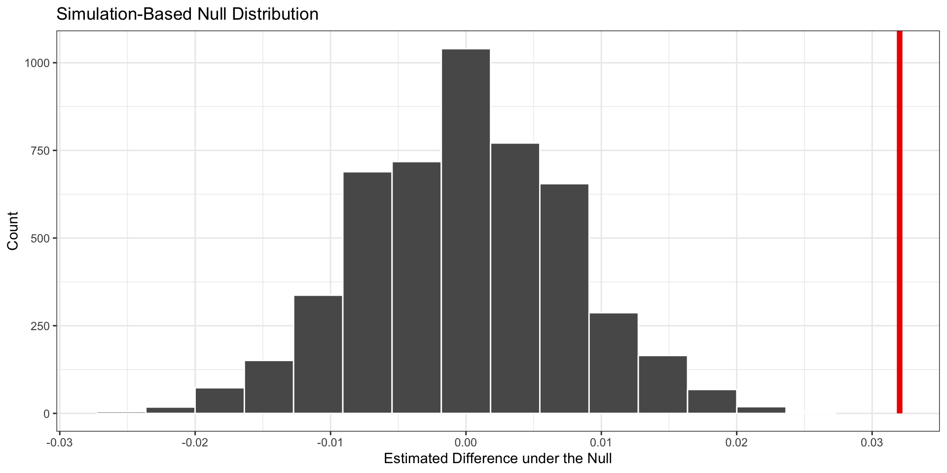 Then we can ask: how likely would we be to observe the treatment effect in our data, if there is no effect of the treatment?