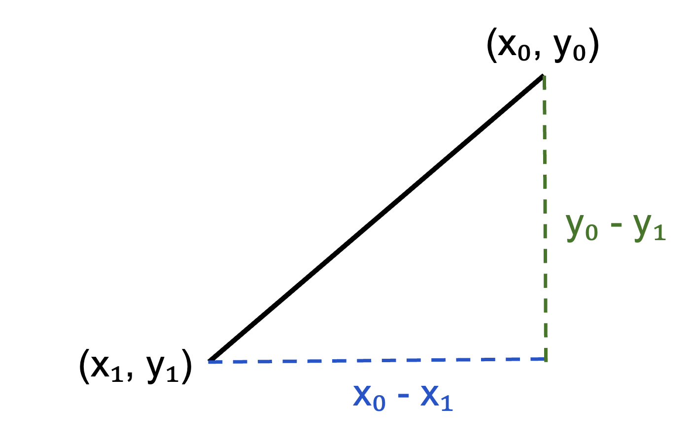 \[ D = \sqrt{(x_0-x_1)^2 + (y_0-y_1)^2}. \]