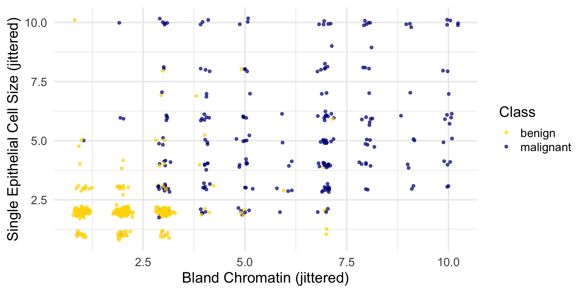 The jittering is just for visualization; we’ll use the original (unjittered) data for modeling.