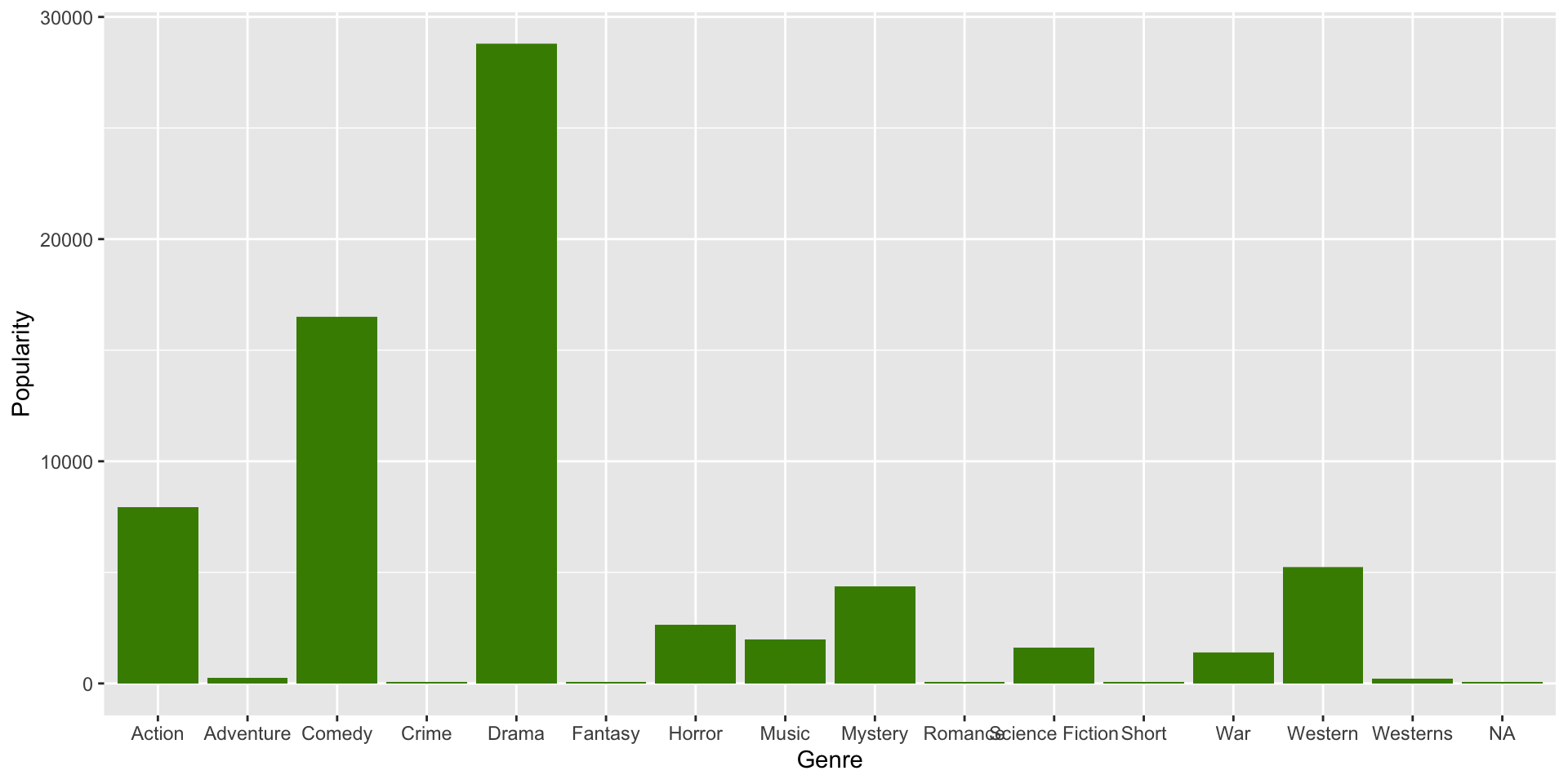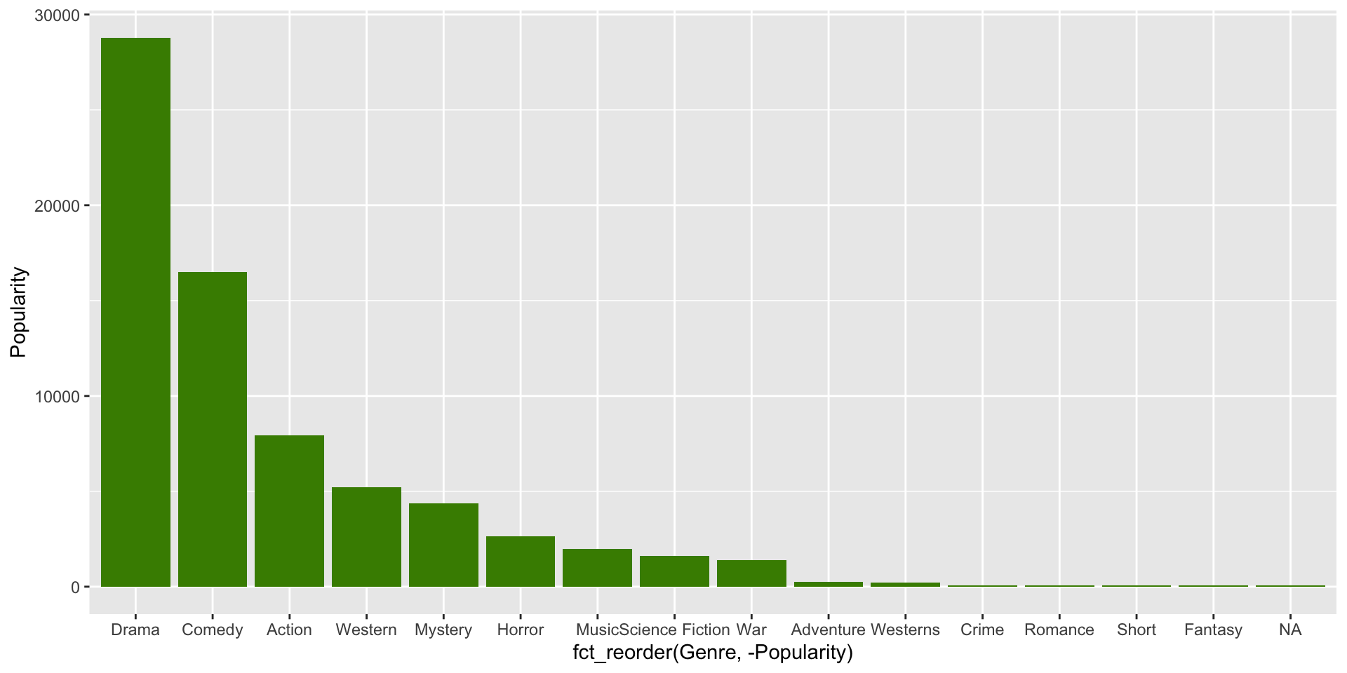 # load dplyrlibrary(dplyr)# load datafilms <-read_csv("data/film_cleanish.csv")# filter for the films with awardsfilms_w_awards <- films |>filter(Awards)# create histogramggplot(films_w_awards, aes(x = Length)) +geom_histogram(fill ="chartreuse4") +labs(x ="Length of the Movie",y ="Number of Movies",title ="Movie Lengths of Award Winning Classic Films",caption ="Source: Telecom ParisTech" ) +theme_minimal()