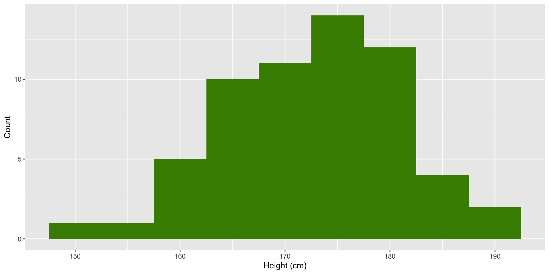 library(tidyverse) # let's load in everythingset.seed(7) # we are going to create something random# the 'seed' is so my random looks like your randomN <-60#number of observationslifelog <-tibble(id =1:N, # identifier (categorical by meaning)age =sample(18:35, N, replace =TRUE), # numeric (discrete integer)height_cm =round(rnorm(N, mean =170, sd =10), 1), # continuouscommute_mode =sample(c("Walk","Bike","Transit","Car"), N, replace =TRUE), # categorical (nominal)coffee_cups =sample(0:5, N, replace =TRUE), # counts (discrete numeric)coffee_today = coffee_cups >0, # logical/binary (categorical by meaning)study_hours =round(runif(N, 0, 6), 1), # continuousmood =factor(sample(c("Low","Medium","High"), N, replace =TRUE),levels =c("Low","Medium","High"), ordered =TRUE), # categorical (ordinal)zip_code =sample(c("20001","20002","20037","20052"), N, replace =TRUE) # numeric-looking categorical)