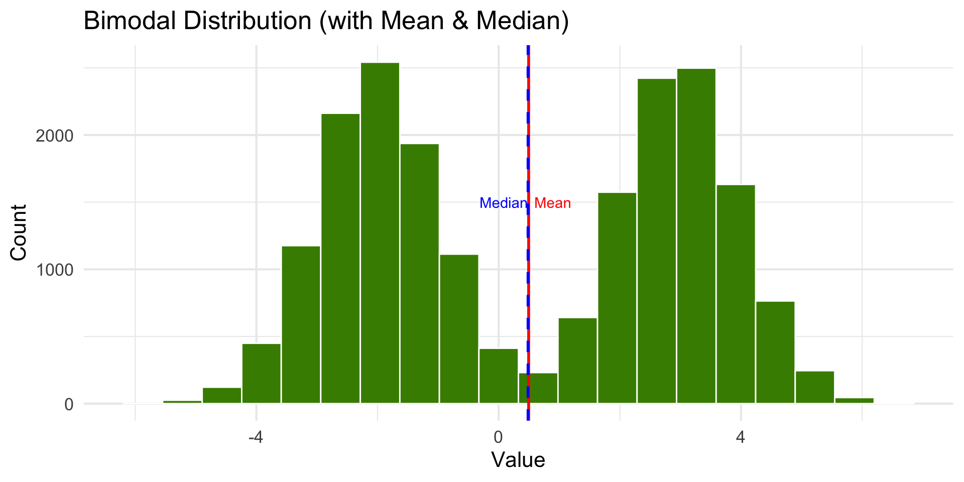 labs(title = "Bimodal Distribution (with Mean & Median)",