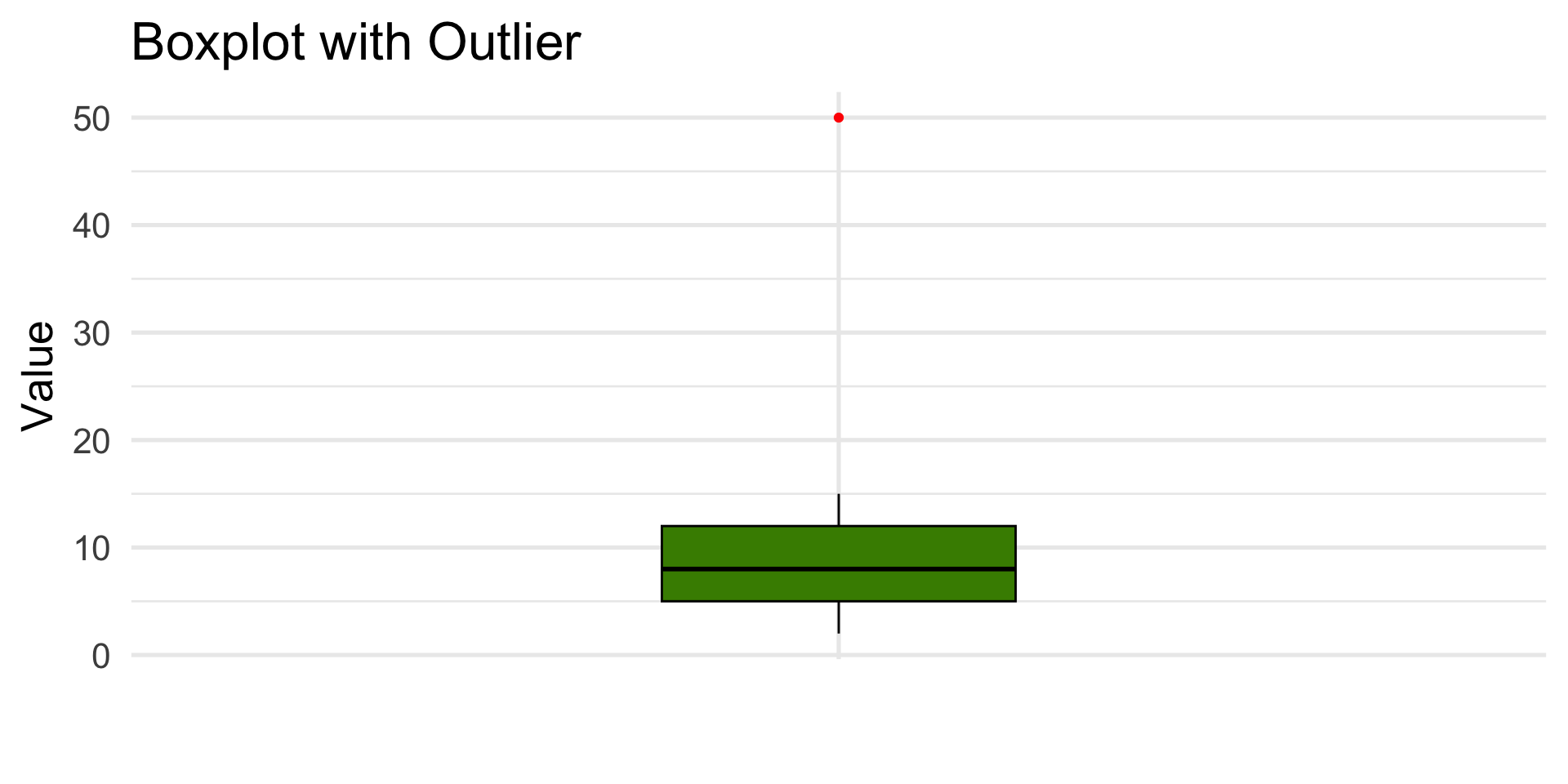 Whiskers extend extend up to \(1.5 \times IQR\) beyond the box. Anything farther out is flagged as an outlier and plotted as a red point.