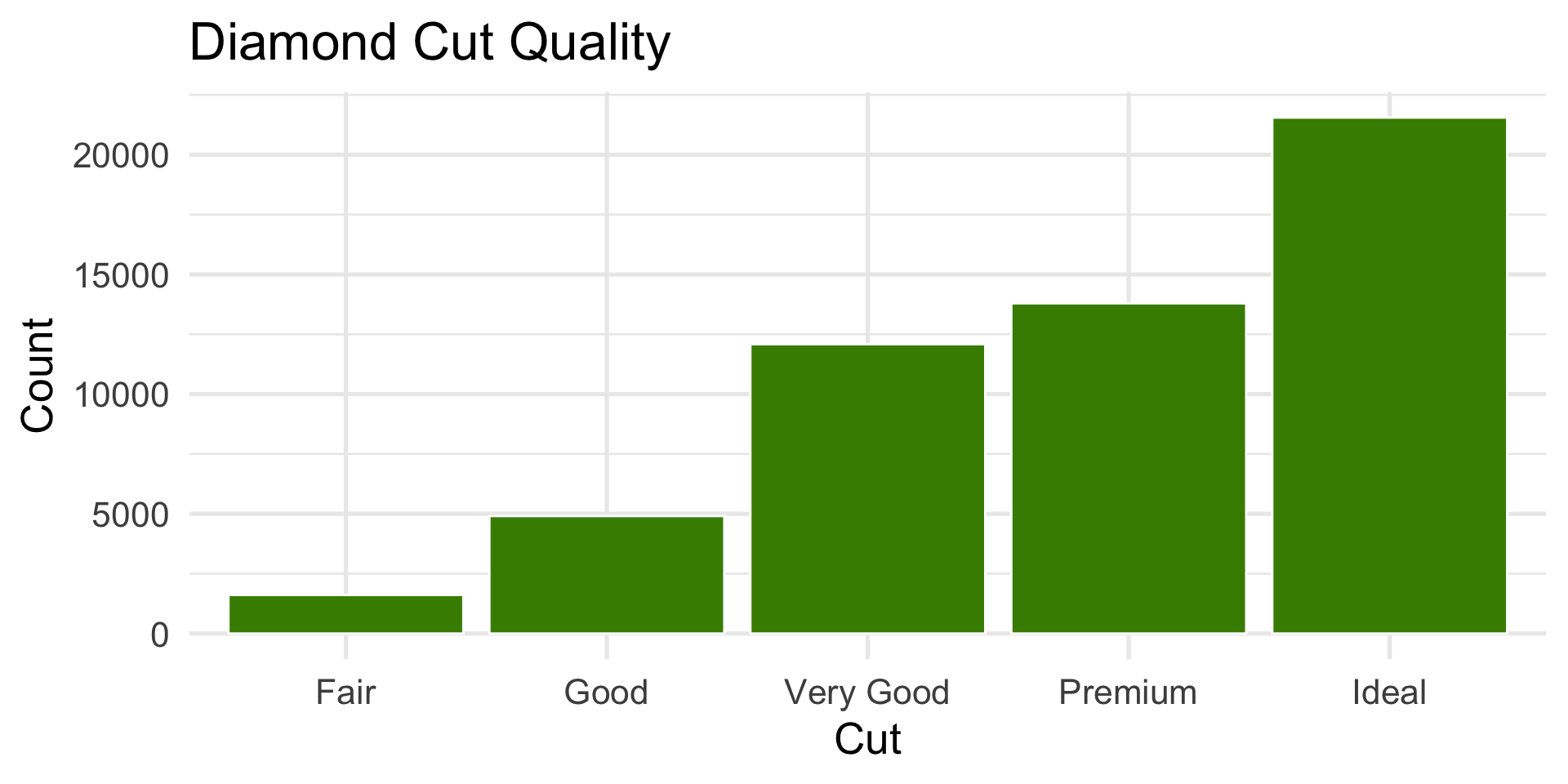 labs(title = "Diamond Cut Quality", x = "Cut", y = "Count")How do we find where our data is centered?