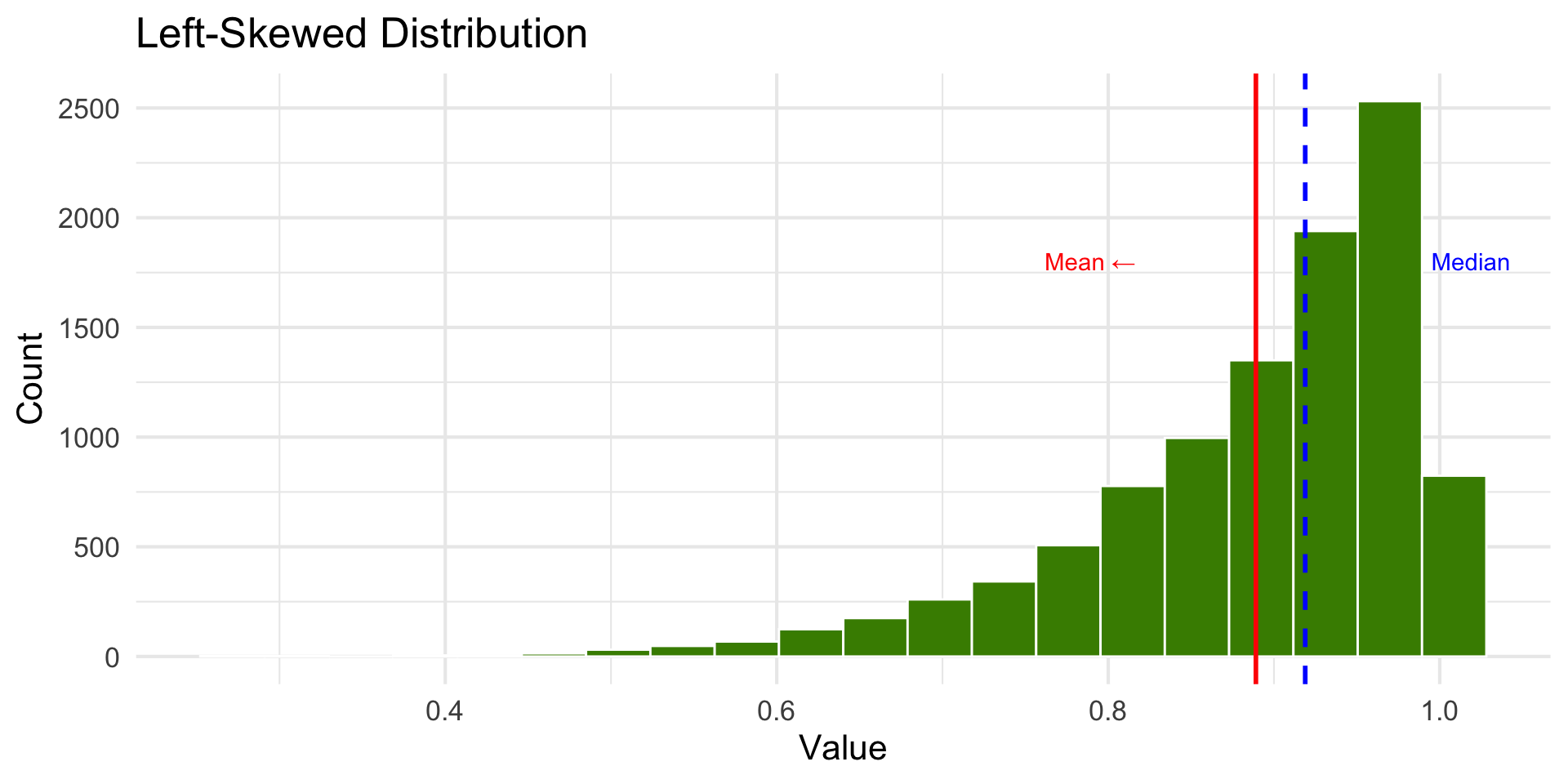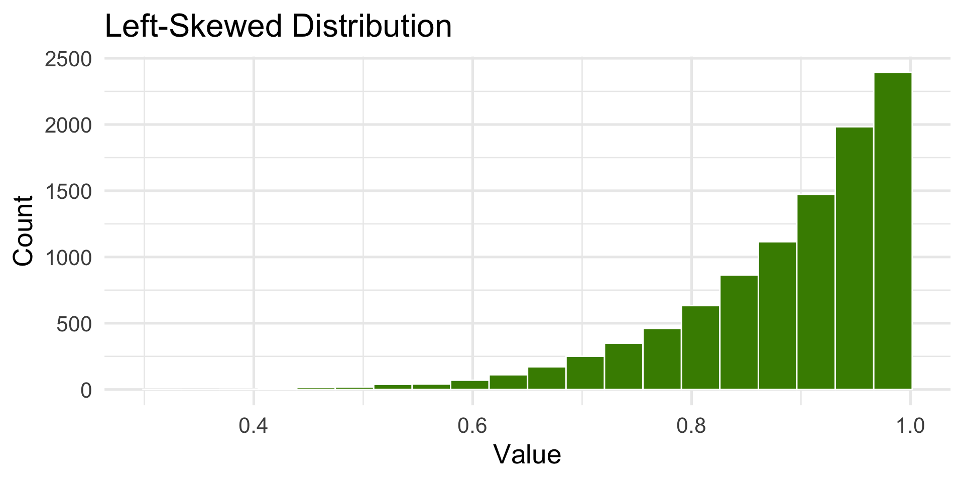 labs(title = "Left-Skewed Distribution", x = "Value", y = "Count") +