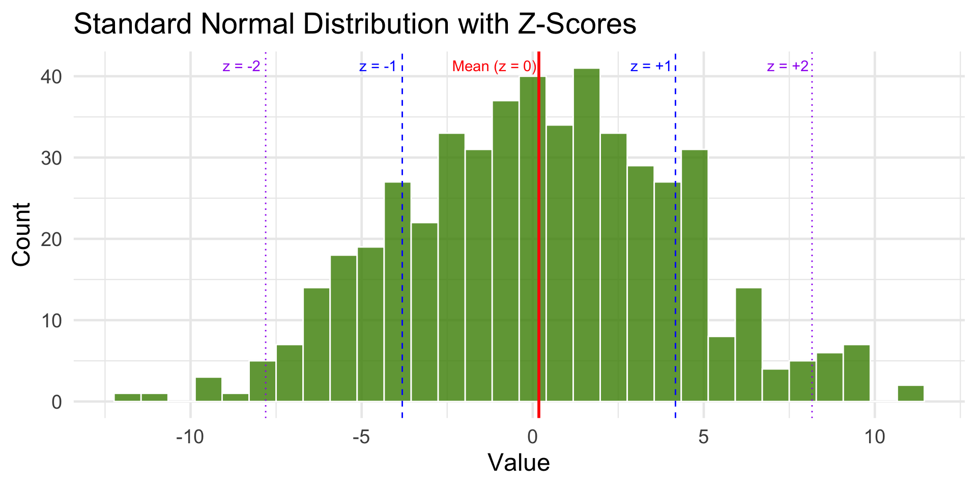 theme_minimal(base_size = 18) + annotate("text", x = mean_x -1.3, y = 40, label = "Mean (z = 0)", color = "red", vjust = -0.5) +
