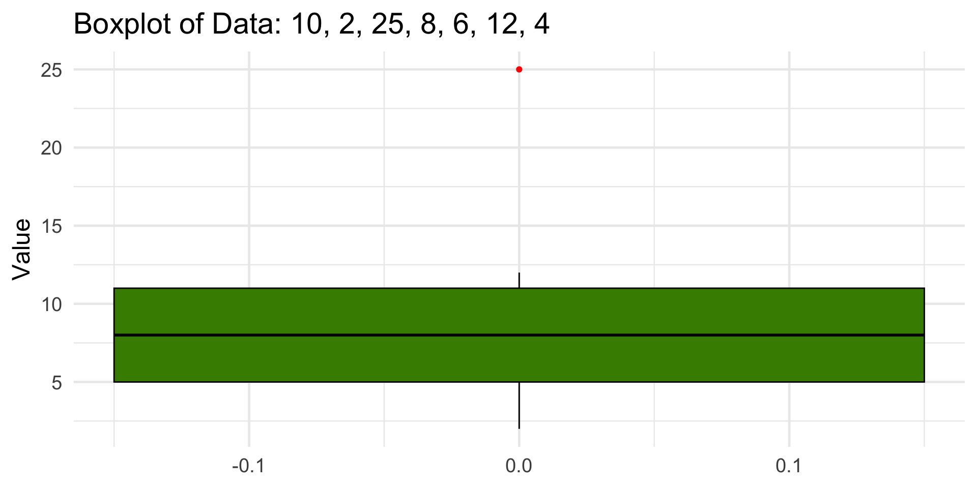 data <- tibble(x = c(10, 2, 25, 8, 6, 12, 4))