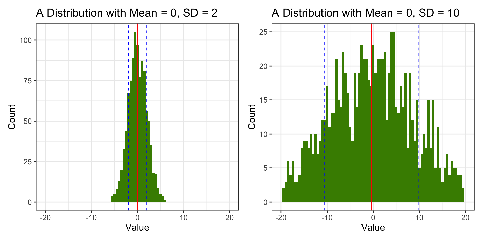 p_small + p_largeTwo datasets can have the same center but very different variability.