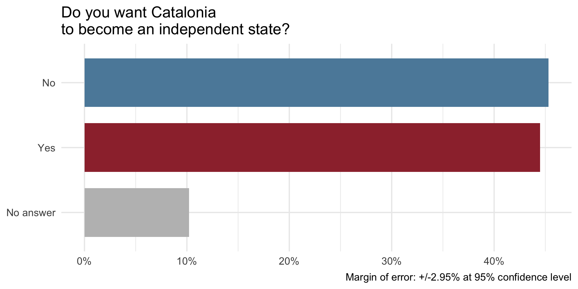On December 19, 2014, the front page of Spanish national newspaper El País read “Catalan public opinion swings toward ‘no’ for independence, says survey”.1